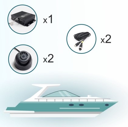 Комплект видеонаблюдения для судна - регистратор, 2 камеры