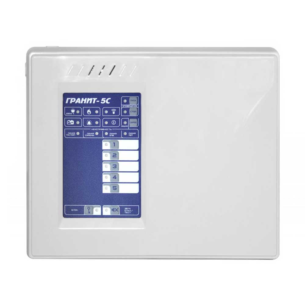 Контрольный прибор «Сибирский Арсенал» «Гранит-5C» рассчитан на пять шлейфов сигнализации. Укомплектован тремя выходами типа «открытый коллектор» и одним типа «сухие контакты». Оповещает о тревоге и других событиях с помощью световых и звуковых оповещателей, табло «Выход». Поддерживает все алгоритмы работы (А, В и С) согласно свода правил СП 484.1311500.2020 «Системы противопожарной защиты. Системы пожарной сигнализации и автоматизация систем противопожарной защиты. Нормы и правила проектирования» (01.03.2021 г). Оборудован входами для подключения внешнего источника питания, аккумуляторной батареи, дополнительного порта Touch Memory, считывателя «Портал», пяти шлейфов охранной или пожарной сигнализации, устройства дистанционного пуска, коммуникатора (GE, Wi-Fi), microUSB для подключения к ПК, тремя выходами линий реле, выходами питания, сирены, табло, выходами типа открытый коллектор, разъемом соединения платы контроллера и платы источника питания, перемычками настройки, сброса настроек, установки пароля, обновления прошивки, бипером, светодиодными индикаторами питания, состояния, событий, связи.