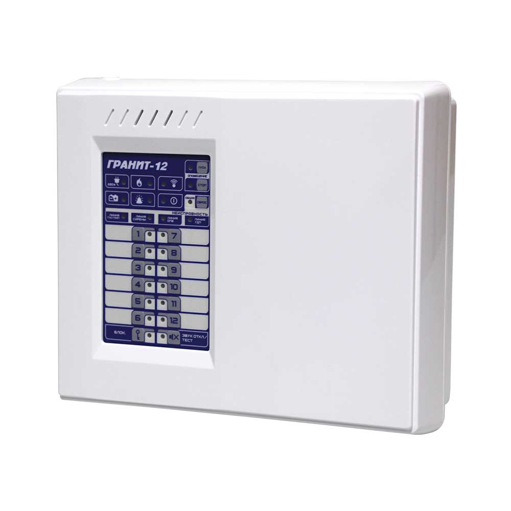 Контрольный прибор «Сибирский Арсенал» «Гранит-12Л (УК)» для работы в составе системы передачи извещений «Лавина» в качестве объектового прибора рассчитан на двенадцать шлейфов охранной или пожарной сигнализации. Принимает информацию о тревожных и прочих событиях от контрольно-приемных приборов и извещателей и передает на специально оборудованный пульт централизованного наблюдения (ПЦН). Принимает команды управления с ПЦН по обратному каналу. Поставляется с универсальным (GSM, GPRS) коммуникатором на две SIM-карты. Поддерживает все алгоритмы работы (А, В и С) согласно свода правил СП 484.1311500.2020 «Системы противопожарной защиты. Системы пожарной сигнализации и автоматизация систем противопожарной защиты. Нормы и правила проектирования» (01.03.2021 г).