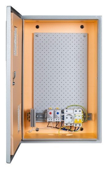 Данный продукт представляет собой навесной шкаф, предназначенный для размещения климатического оборудования. Шкаф оснащен системой активной вентиляции с вентилятором и защитным реле от "холодного пуска".