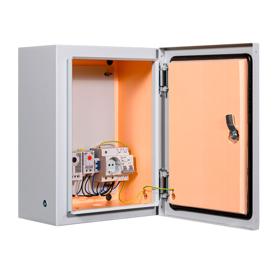В состав шкафов входит блок управления климатом с несколькими термореле, гарантирующими поддержание стабильной температуры внутри. Нагреватель эффективно предотвращает переохлаждение оборудования.
