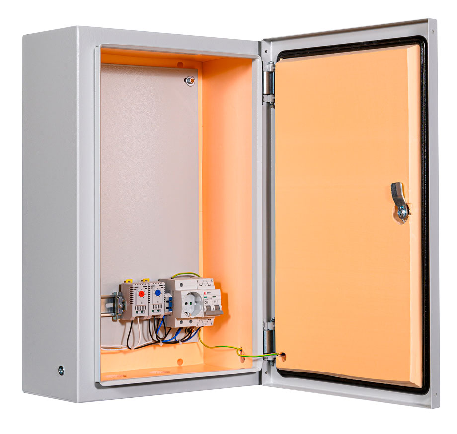 Шкаф предназначен для настенной установки и весит 7.5 кг. Толщина корпуса составляет 1 мм.