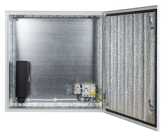 Надежная защита IP66: Степень защиты IP66 гарантирует полную защиту от пыли и сильных струй воды, что позволяет использовать шкаф в самых неблагоприятных погодных условиях. Это особенно важно для оборудования, установленного на открытом воздухе.Широкий диапазон рабочих температур: Климатический шкаф разработан для работы в экстремальном температурном диапазоне от -55°C до +50°C. Встроенный нагреватель мощностью 150 Вт обеспечивает поддержание оптимальной температуры внутри шкафа даже при сильных морозах. Термореле и реле предстарта гарантируют эффективное и безопасное управление нагревательным элементом.