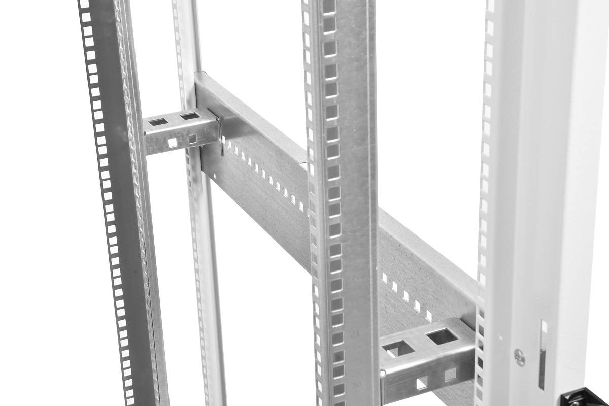 В комплект поставки входят четыре винтовые опоры, компенсирующие неровности пола. Защита собранного шкафа отвечает спецификации IP20. Размер — 600×1000×2030 мм, вес — 116.37 кг.