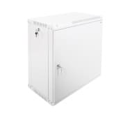 Телекоммуникационный шкаф ЦМО ШРН-Э-12.500.1 сборно-разборной конструкции выполнен в типоразмере 19" по ГОСТ 28601-90 (МЭК 297), климатическом исполнении УХЛ4.2 по ГОСТ 15150–69 (+1 °C… +40 °C). Изготовлен из стали толщиной до 2 мм. Состоит из каркаса, крыши и основания, двух боковых стенок с маркированными вертикальными направляющими, двух передних направляющих с юнитовой маркировкой и цельнометаллической двери с точечным замком. Элементы крепления обеспечивают высокую жесткость. Листовые детали покрыты порошковой краской светло-серого (RAL 7035) цвета, направляющие оцинкованы. Максимально допустимый вес установленного оборудования составляет 75 кг.