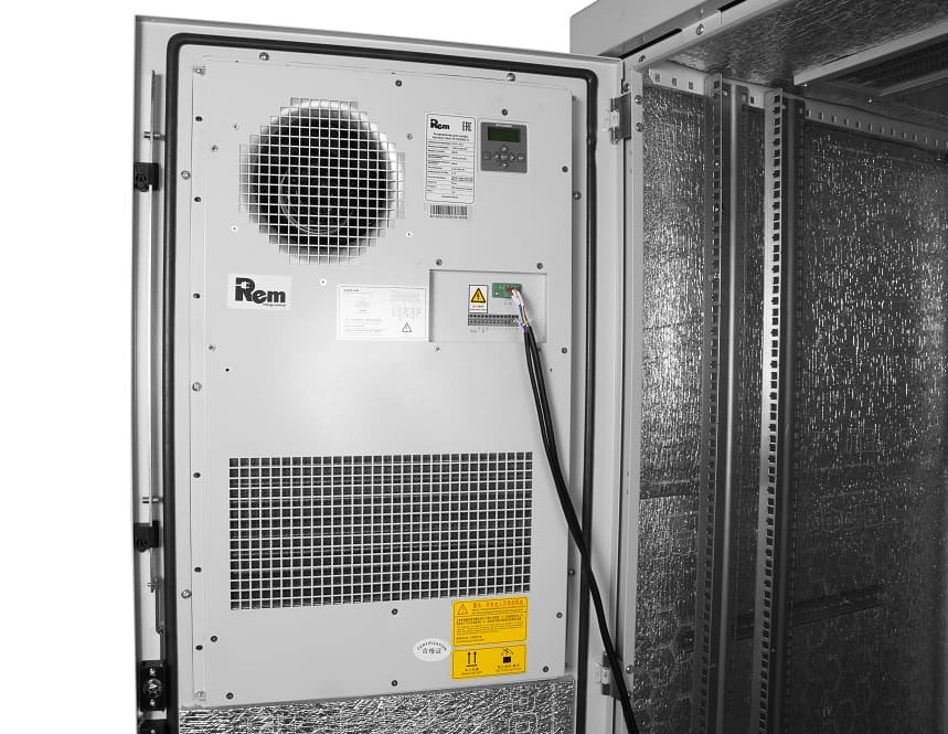 Шкаф оснащен автоматической системой климат-контроля для поддержания оптимальных условий эксплуатации оборудования, размещаемого внутри. Система включает в себя: