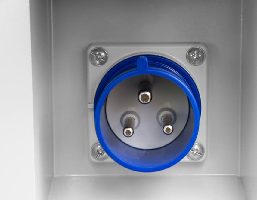 * Наружная розетка 32А типа DEKraft серии ВЩ-102 для подключения внешнего источника питания.