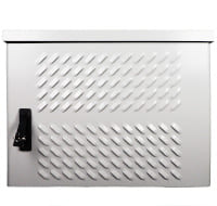 Шкаф оснащен обогревателем и термоизоляционным фольгированным материалом на внутренних поверхностях для обеспечения оптимального режима работы оборудования. Заглушенные дверные окна позволяют установить вентиляционные модули или кондиционер.