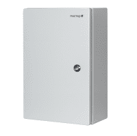 Электротехнический шкаф Mastermann «Мастер 3 У» изготовлен из листовой стали марки Ст3 толщиной 1.2 мм (1.5 мм — с покрытием). Состоит из сварного корпуса и рамы с дверью. В основании корпуса предусмотрено два отверстия для кабельных вводов (два гермоввода MG-25 с каучуковой мембраной — в комплекте), по периметру проема — металлический воротник, по периметру двери — резиновый уплотнитель, на задней стенке — две клеммные колодки.
