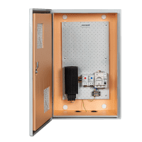 Шкаф укомплектован DIN-рейкой, DIN-розеткой с заземлением, двумя гермовводами MG-25, клеммной колодкой, системой обогрева. В систему обогрева входят обогреватель HG 140 мощностью 75 Вт. автоматический выключатель 10 А, нормально закрытое термореле KTO 011.