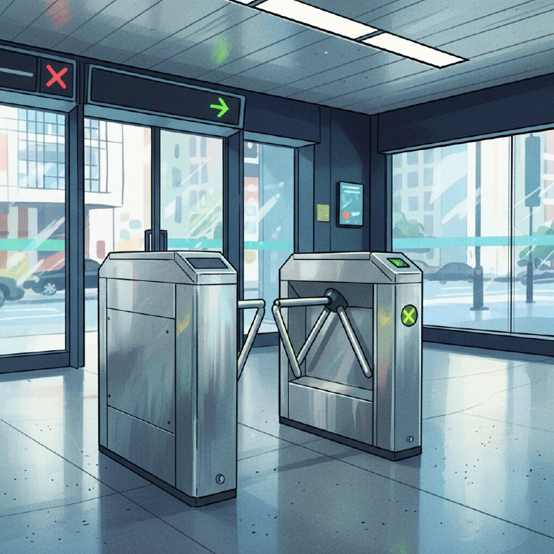 - Тип турникета (трёхштанговый, скоростной, «крыло» и т. д.) и класс защиты IP