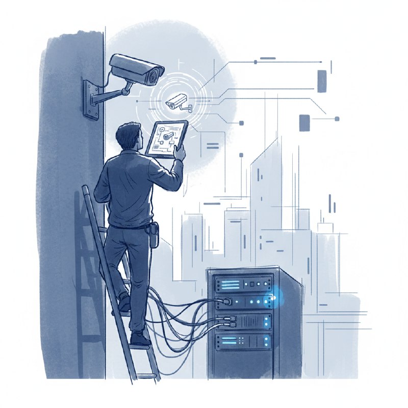- Проверка и техническое обслуживание видеокамер (профилактика компонентов, требующих периодической очистки, ухода или замены), устранение неисправностей