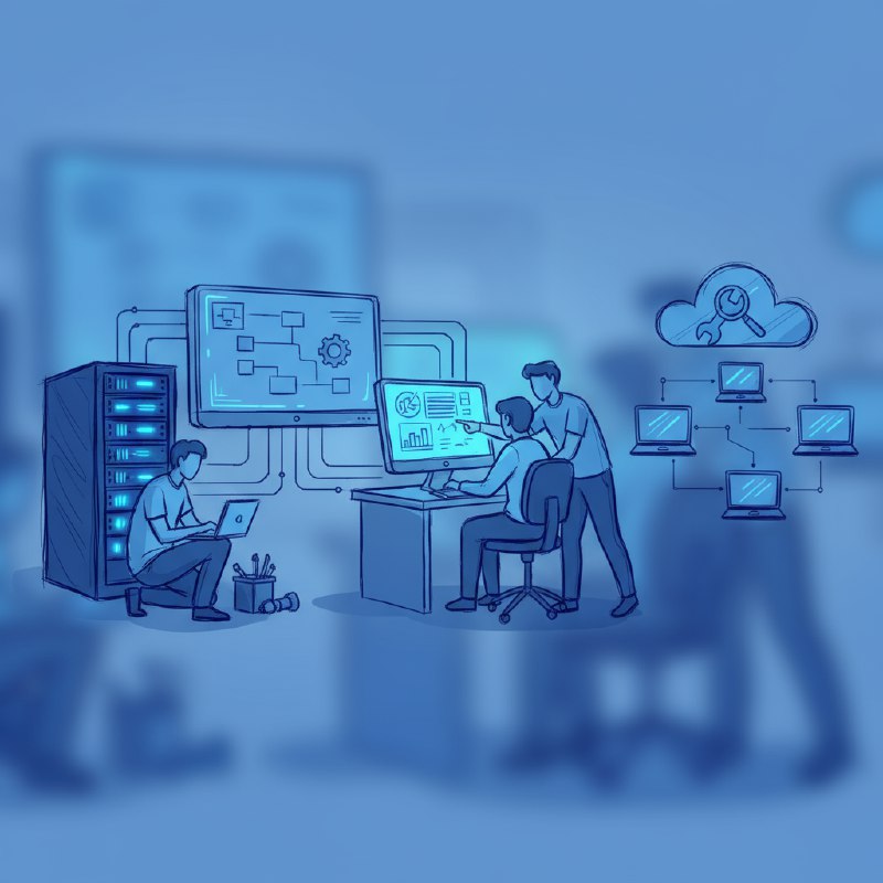 Это также включает анализ логов, мониторинг доступности устройств и оборудования, а также предоставление отчетов о работе системы.